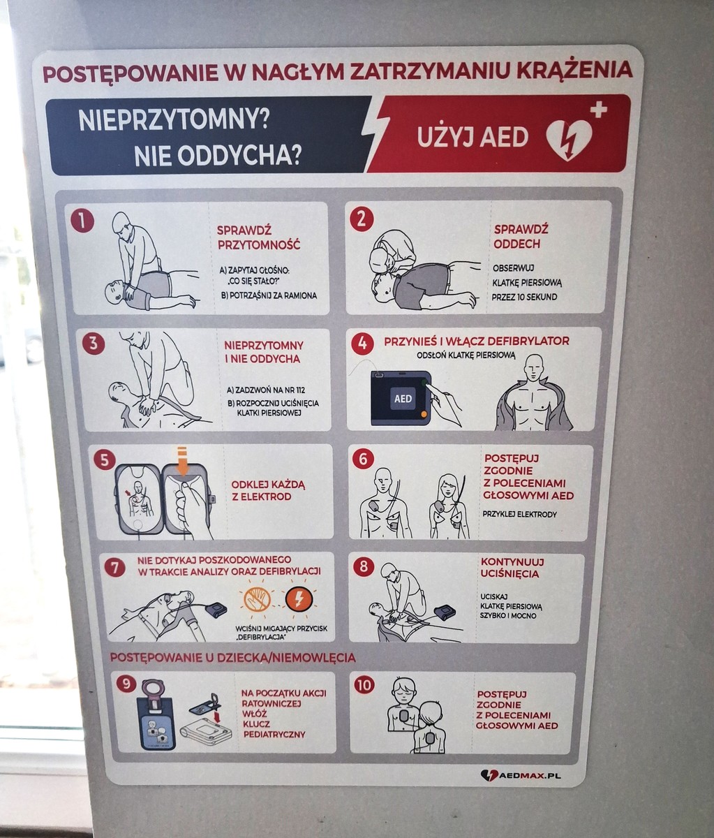 Zachęcamy wszystkich, aby w sytuacji zagrożenia życia nie obawiali się sięgnąć po to urządzenie. Pamiętajmy – AED jest po to, by ratować życie, a jego użycie może mieć kluczowe znaczenie. Wspólnie dbajmy o bezpieczeństwo i zdrowie – każda minuta ma znaczenie.